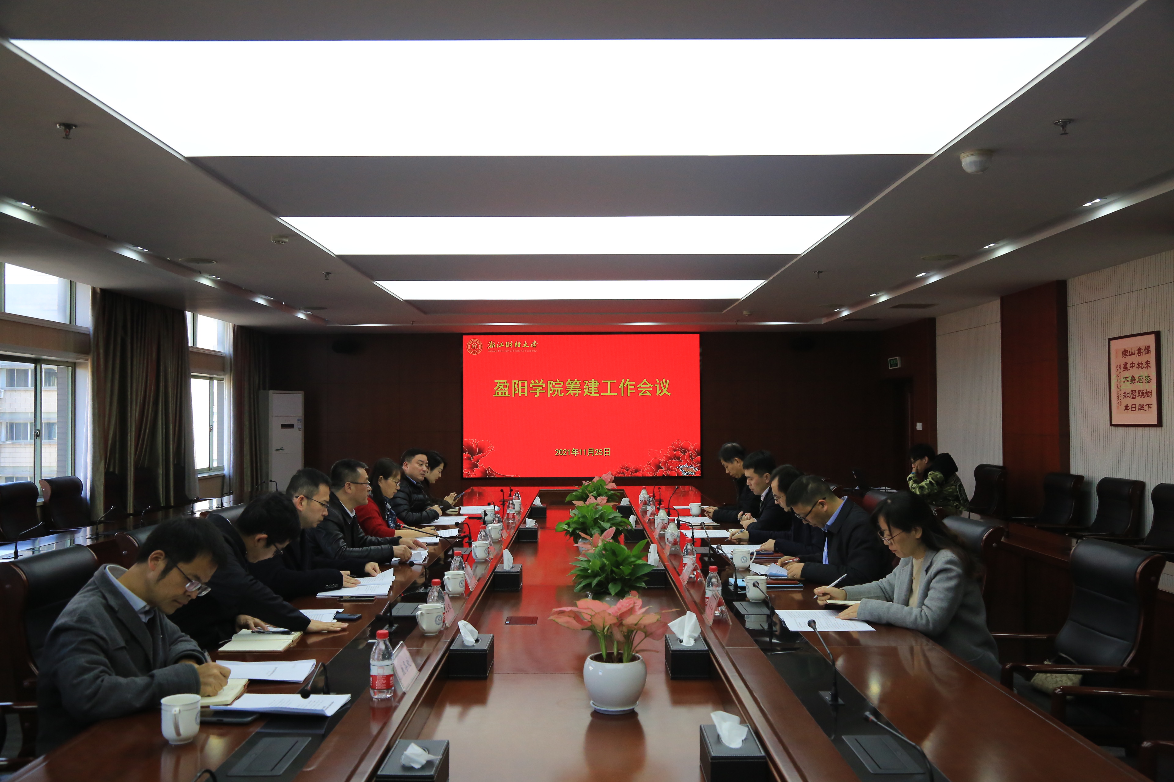 相关职能部门、学院负责人,盈阳资产代表参加会议。