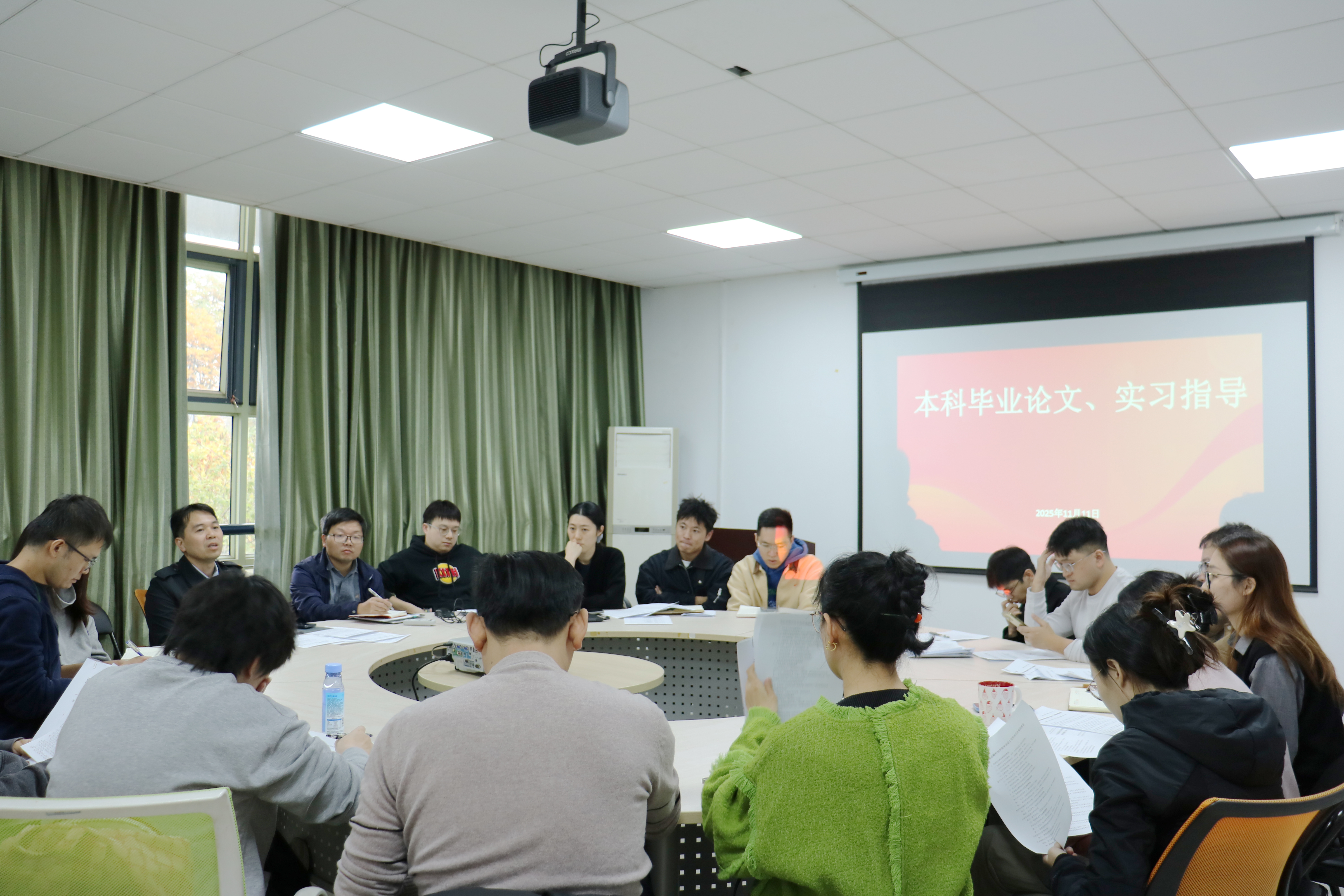 最后,傅俊辉介绍了2026届本科生毕业实习工作安排的形式和要求,他强调各位综合导师要定期与学生沟通和了解实习进展,确保学院首届毕业生能够顺利毕业。